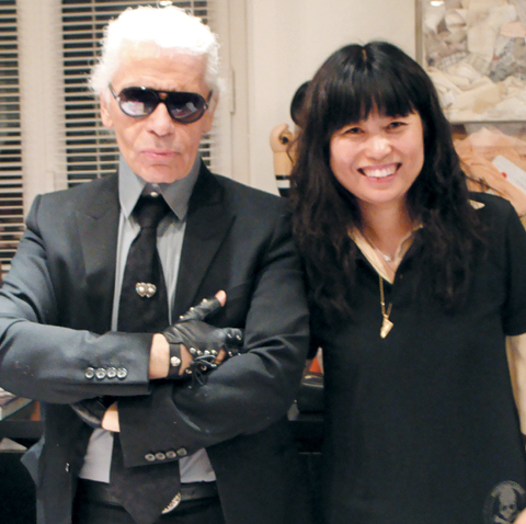 ▲ 샤넬 수석 디자이너 칼 라거펠트(사진 왼쪽)와 포즈를 취한 김영성씨./김영성씨 제공