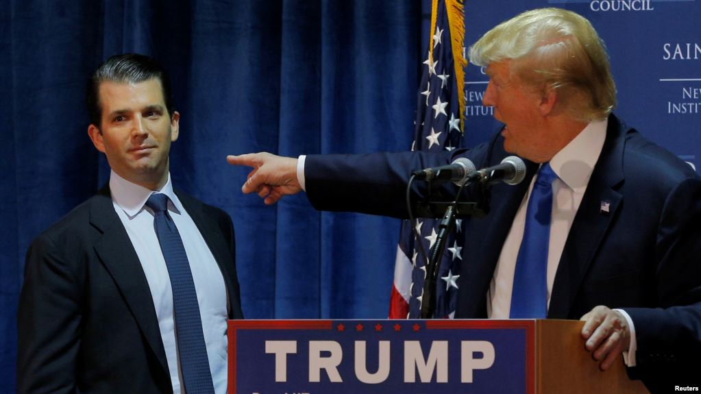 - 도널드 트럼프 미국 대통령의 장남인 도널드 트럼프 주니어가 지난해 7월 클리블랜드에서 열린 공화당 전당대회에서 연설하고 있다. 도널드 트럼프 미국 대통령의 장남이 어제(9일), 아버지가 공화당 대선 후보로 지명된 직후 선거에 도움이 되는 정보를 얻기…