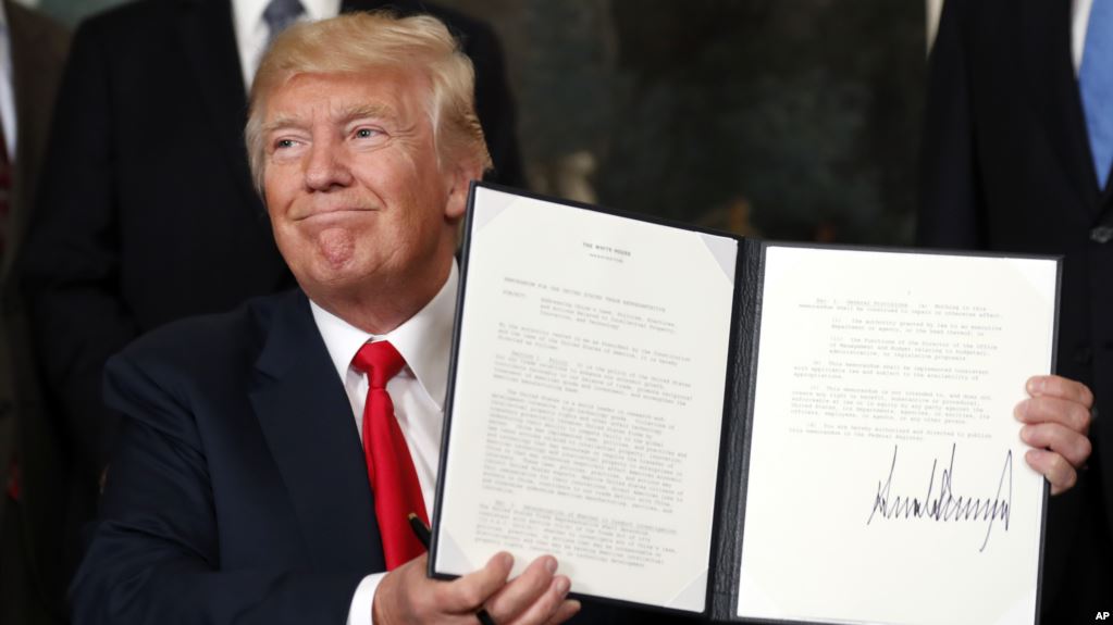- 도널드 트럼프 미국 대통령이 14일 중국 기업의 미국 지적재산권 침해 행위를 조사하도록 하는 행정명령에 서명한 후 들어보이고 있다. 중국 정부가 중국 기업의 지적재산권 침해에 관한 미국 당국의 조사 방침에 강력히 반발했습니다.중국 상무부는 오늘(15…