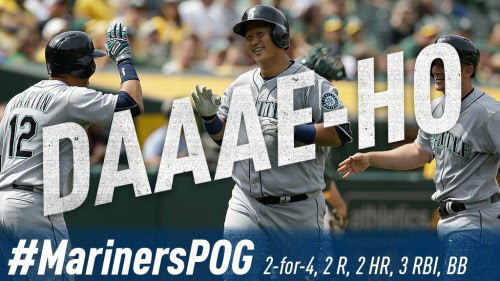 - 연타석 홈런으로 팀에 3연승을 선물한 이대호(34·시애틀 매리너스)가 경기를 마친 뒤 현지 매체와 가진 인터뷰에서 소감을 밝혔다.이대호는 5일(한국시각) 미국 캘리포니아주 오코 콜리세움에서 열린 오클랜드 애슬레틱스와 메이저리그 방문 경기에 8번 타자 1루수로 선발 출전…
