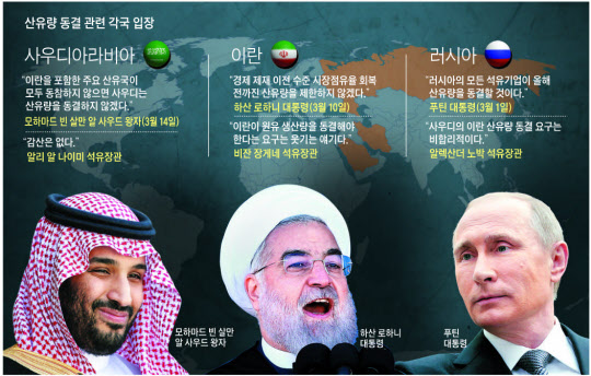 이란 역시 물러서지 않았다. 애초 도하 회의 참석이 예정됐던 비잔 장게네 이란 석유장관은 "이란의 산유량을 제한하는 어떤 합의에도 참여하지 않겠다"며 회의 직전 참석을 취소했다. 2012년 국제사회의 제재 이전에 하루 400만 배럴이던 이란의 산유량은 현재 절반 수준으로 하락한 상태다. 로하니 이란 대통령은 "제재 이전에 유지되던 '역사적으로 정당한 시장점유율'을 곧 회복하겠다"고 공언해왔다.