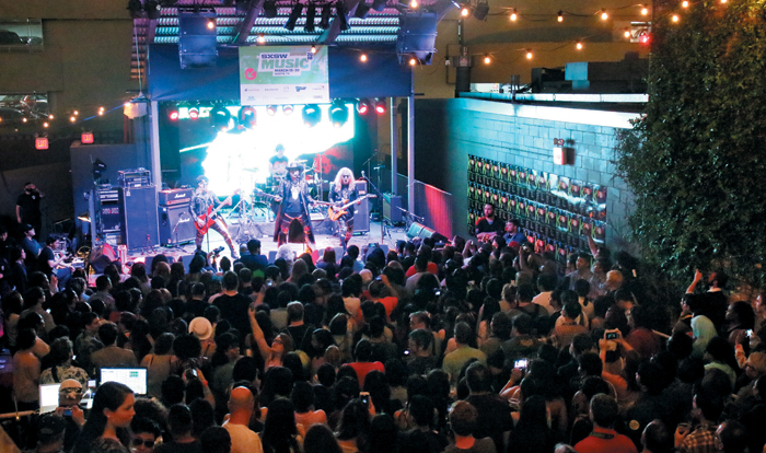 - 한국 헤비메탈 밴드‘피해의식’이 16일 미국 텍사스 오스틴에서 열린 세계 최대의 음악축제‘사우스바이사우스웨스트’의‘K팝 나이트아웃(K팝의 밤)’에서 공연을 펼쳤다. 한 팬은“이들의 음악을 듣기 위해 1600㎞ 이상 떨어진 오하이오주(州)에서 왔다”고 했다. /한국콘텐츠…