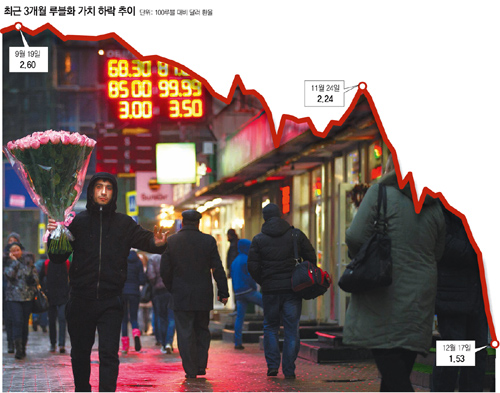 루블화 폭락에 당국 외환시장 개입, 예금-연금 인출사태… 민심 동요