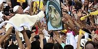 - 알바니아를 방문한 프란치스코 교황이 21일(현지시간) 수도 티라나에서 군중이 들고 있는 테레사 수녀의 포스터를 향해 손을 뻗고 있다. 티라나 | AP연합뉴스알바니아 방문서 비판… 외신 “IS 염두” 해석도알바니아를 방문한 프란치스코 교황이 이라크와 시리아 일부…