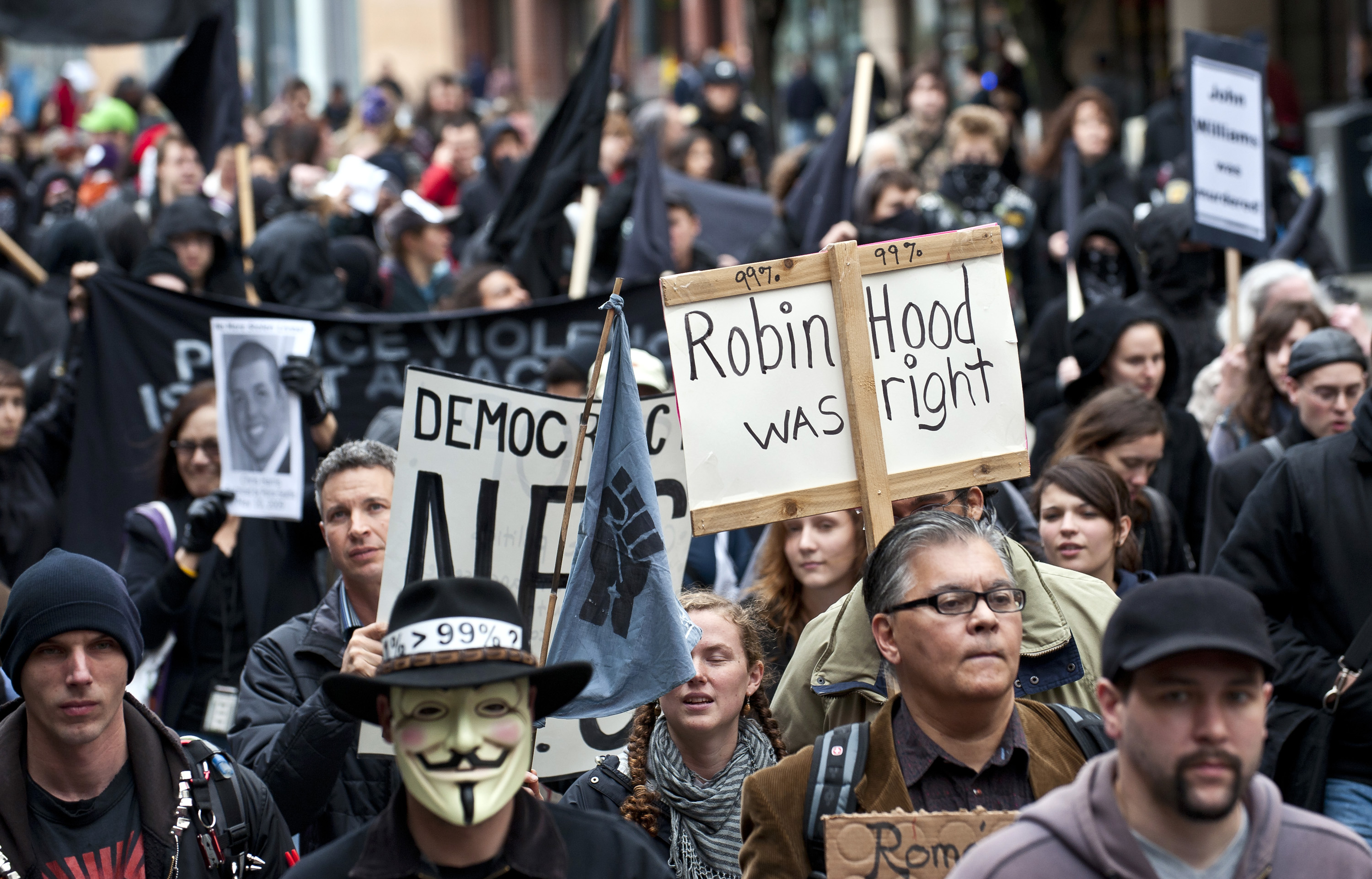 2011년 9월 자본주의 심장부 미국 뉴욕 맨해튼 주코티 공원에서 시작된 월가 점령 시위. 시위대는 ‘우리는 99%다’라는 구호를 외치며 상위 1%에 집중된 부의 불평등에 항의하며 거리를 점령했다.