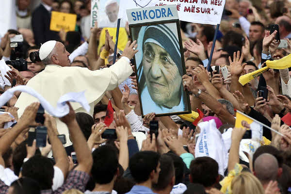 - 알바니아를 방문한 프란치스코 교황이 21일(현지시간) 수도 티라나에서 군중이 들고 있는 테레사 수녀의 포스터를 향해 손을 뻗고 있다. 티라나 | AP연합뉴스알바니아 방문서 비판… 외신 “IS 염두” 해석도알바니아를 방문한 프란치스코 교황이 이라크와 시리아 일부…