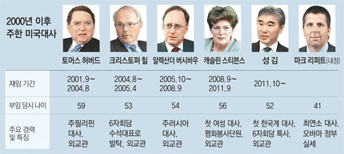 차기 주한 미국대사로 내정된 마크 리퍼트 국방부 장관 비서실장(41)은 올해 부임하면 최연소 대사가 될 것으로 전망된다. 기존 최연소 주한대사는 1955년 부임한 윌리엄 레이시 대사로, 당시 45세였다. 주미 한국대사 중 최연소도 41세로, 1973년 부임한 함병춘 대사였다.