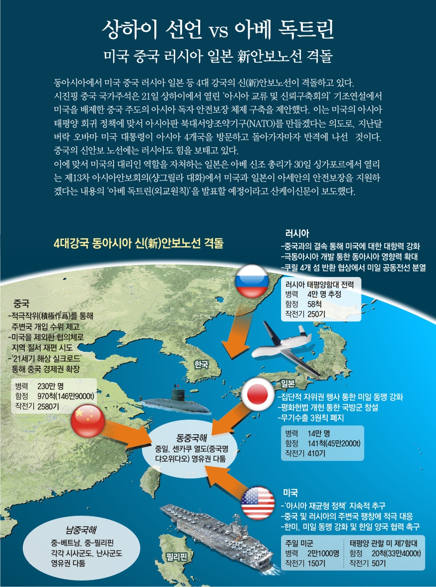 상하이 선언 vs 아베 독트린… 新안보노선 격돌