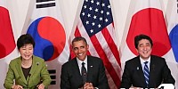- 박근혜 대통령, 버락 오바마 미국 대통령, 아베 신조 일본 총리가 25일 오후(현지시각) 네덜란드 헤이그 미대사관저에서 한미일 정상회담을 하고 있다. (청와대)버락 오바마 미국 대통령은 결국 일본 측의 강한 바람에도 불구하고 체류기간으로 2박3일이 아닌 1박2일을 선택…