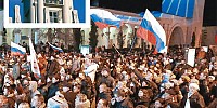 - 크림공화국이 29일 오후 10시 표준시간을 2시간 당겨 30일 0시로 만들었다. 모스크바 표준시에 맞추기 위해서다. 러시아 국기가 걸린 크림 수도 심페로폴의 철도역 시계탑이 크림의 현주소를 상징적으로 보여준다(왼쪽 위 작은 사진). 시계탑 바늘이 30일 0시로 바뀌자 …