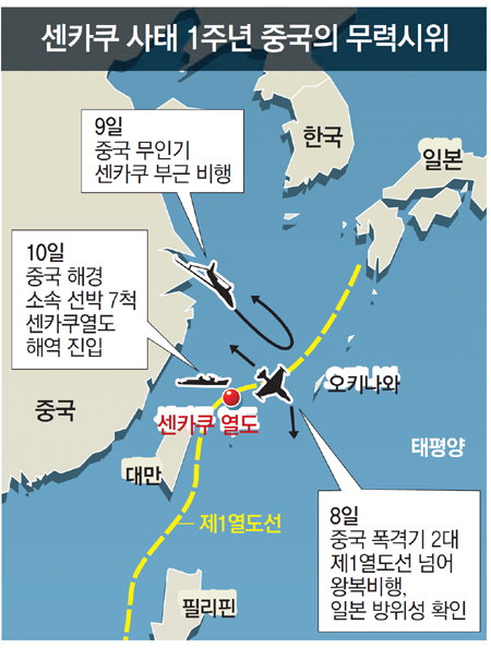 日 센카쿠 국유화 1년… 中 대규모 무력시위