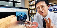 - ▲ 김대형 서울대 교수가 컴퓨터 화면을 통해 손등에 붙인 전자피부를 보여주고 있다. 김 교수가 만든 전자피부는 반도체 칩을 만드는 실리콘으로 만들었지만, 잘 휘어지고 늘어나 굴곡이 많은 피부나 뇌, 심장 표면에 빈틈없이 달라붙는다.전자피부 개발한 서울대 김대형 교수… …