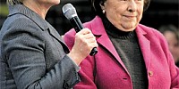 - ▲ 상원의원이던 2007년 민주당 대선 후보 경선에 도전했던 힐러리 클린턴 국무장관이 당시 한 행사장에 어머니 도로시 로댐 여사(오른쪽)를 모시고 나와 지지자들에게 소개하고 있다. /AP 연합뉴스[힐러리 美 국무장관 모친 로댐 여사 92세로 별세]여덟살 때 부모 이혼으…
