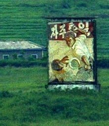 ▲ 강원도 중부전선에서 바라보이는 북측의 '자주통일' 선전물
