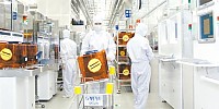 - 삼성전자의 ‘삼성 나노시티 기흥캠퍼스’의 반도체 생산 라인에서 직원들이 반도체 생산 작업을 하고 있다. 대부분의 공정은 자동화돼 있으며 근로자들은 각 공정이 끝난 제품들을 운반하거나 자동기기의 이상 유무만을 체크한다. [삼성전자 제공