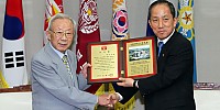 ▲ 평생 모은 거액의 재산을 국가안보를 위해 써달라며 국방부에 기부한 김용철 옹이 25일 서울 용산 국방부에서 김태영 장관으로부터 감사패를 전달받은 뒤 기념촬영을 하고 있다. 김 옹은 평생 모은 100억 원에 가까운 재산을 국방분야에 써달라며 기부했으며, …
