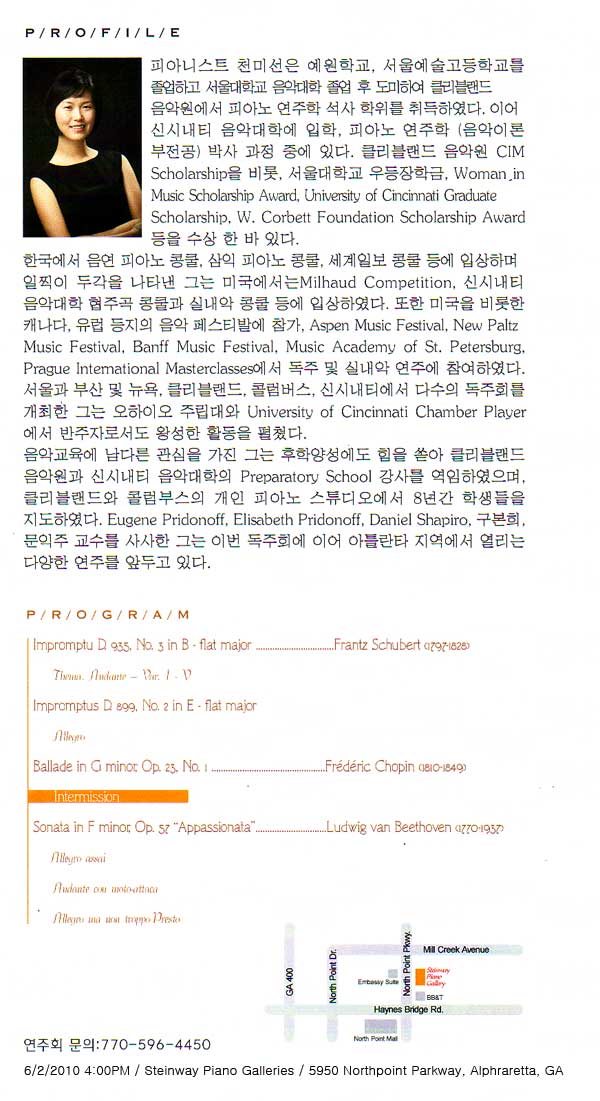 천미선 피아노 독주회에 여러분을 초대합니다.