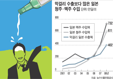 지난해 막걸리 출고량은 17만6398kL로 2003년(13만8162kL)에 비해 28% 늘었다. 1990년대 중반에야 시작된 막걸리 수출은 조금씩 늘어 2003년엔 1676kL를 기록하더니, 2008년에는 5457kL로 5년 만에 3.3배로 늘었다. 이동필 한국농촌경제연구원 선임연구위원은 "아직도 막걸리에는 풀려야 할 규제가 적지 않다"면서 "그러나 막걸리의 부활은 세금을 쉽게 많이 걷기 위해 만든 규제가 얼마나 술 산업을 억눌러 왔는지를 보여주는 대표적인 사례"라고 말했다.