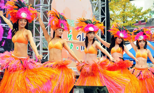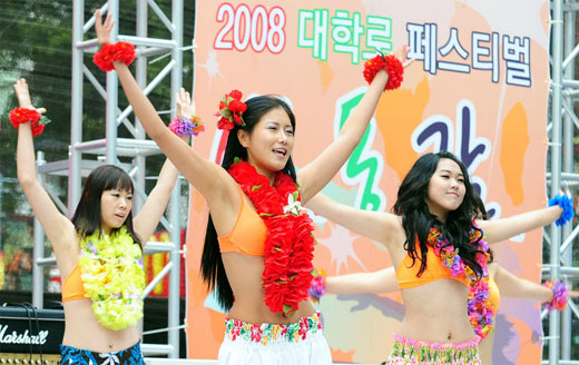 ▲ 25일 오후 서울 대학로에서 열린 '2008 대학로 페스티벌 생-동-감'에서 출연자들이 멋진 댄스를 선보이고 있다./뉴시스